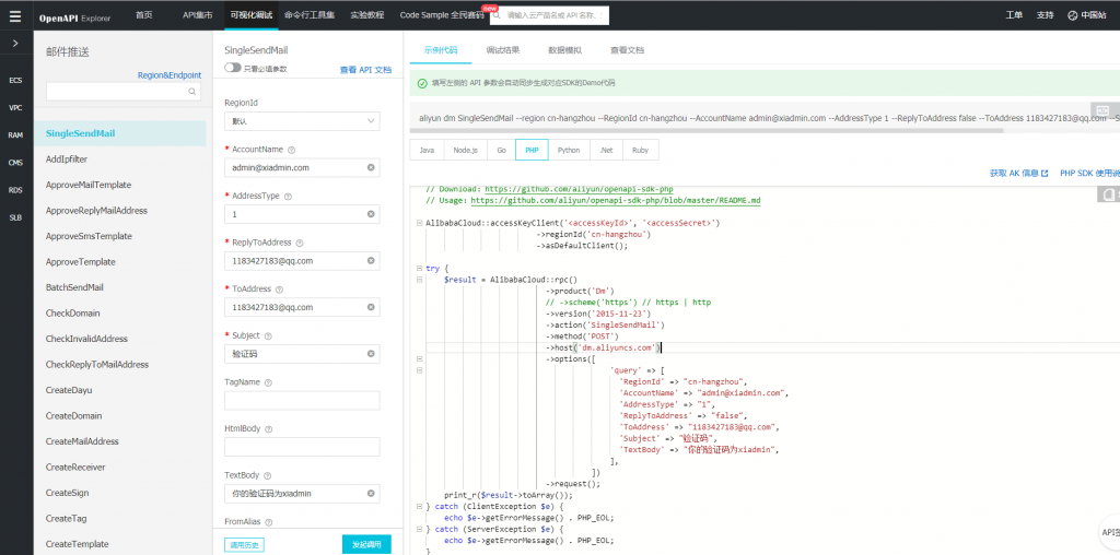 使用阿里云的 OPenAPI 快速发送一封测试邮箱 试试看吧