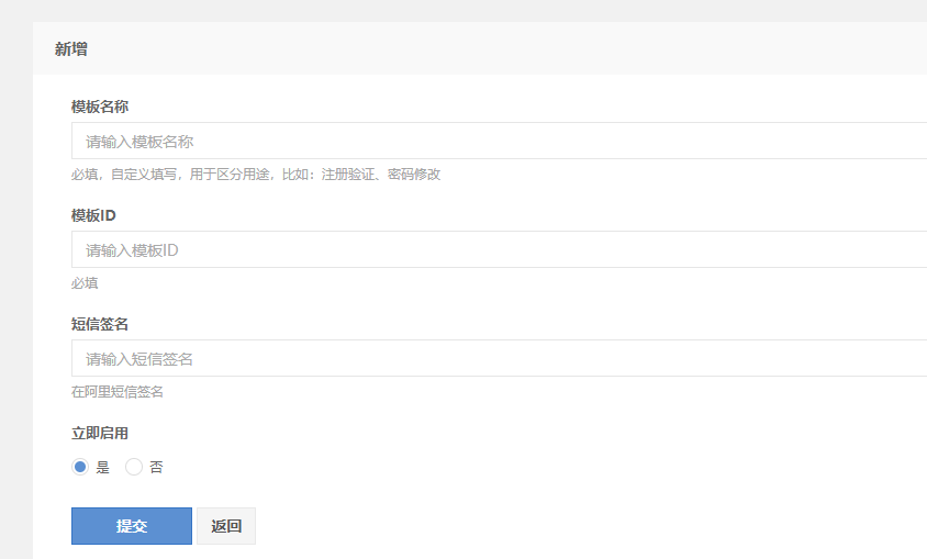 3. 在插件管理中,添加短信模板。需要在阿里云提前先申请好,这些东西都是需要审核的,提前申请