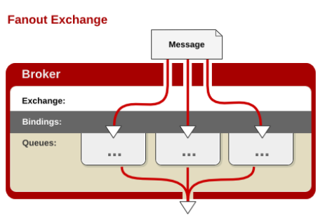 每个发到 fanout 类型交换器的消息都会分到所有绑定的队列上去。fanout 交换器不处理路由键,只是简单的将队列绑定到交换器上,每个发送到交换器的消息都会被转发到与该交换器绑定的所有队列上。很像子网广播,每台子网内的主机都获得了一份复制的消息。fanout 类型转发消息是最快的。