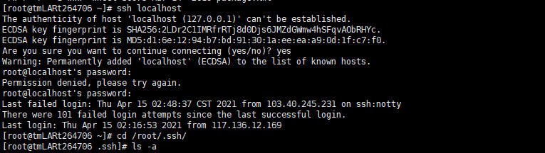 如果出现No such file or directory 提示,没有找到相应文件,原因是因为没有用root用户ssh登录过,执行一下ssh操作就会自动生成了